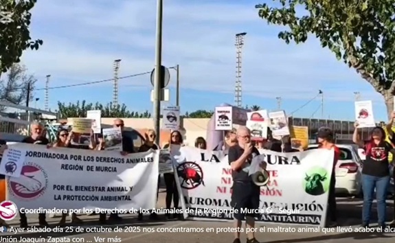 El pasado sábado 25 de octubre de 2025 volvieron a concentrarse, en protesta por el maltrato animal que llevó acabo el alcalde de La Unión, Joaquín Zapata, con su equipo de gobierno colaborando con el festival taurino.