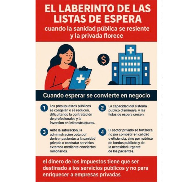 Recientemente se ha publicado la intervención de un directivo de la empresa Ribera (sanidad privada), animando a los y las profesionales de la sanidad, para que alimenten las listas de espera, porque es la mejor forma de engordar los beneficios de su empresa.
