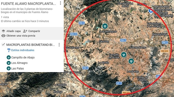 MAPA DE LAS 3 MACROPLANTAS BIOMETANO-BIOGAS EN FUENTE ÁLAMO
