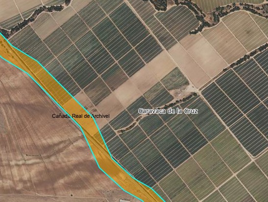 Cañada Real en Archivel, invadida por cultivos intensivos, Almudema