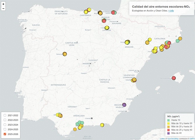 Ecologistas en Acción ha realizado su quinta campaña de ciencia ciudadana para medir NO2 en entornos escolares, en el marco de la campaña Clean Cities. Una campaña cuya importancia radica en la necesidad de divulgar y concienciar sobre la movilidad sostenible y los efectos de la contaminación del aire sobre la población infantil y juvenil.